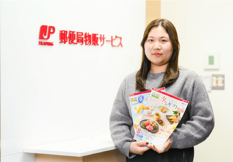 勤務しているのは日本郵政グループの郵便局物販サービスという会社です。郵便局の窓口付近にお中元やお歳暮向けにギフトカタログが置いてあるのを目にした方も多いのではないかと思います。私はそのカタログの制作全般に携わっています。