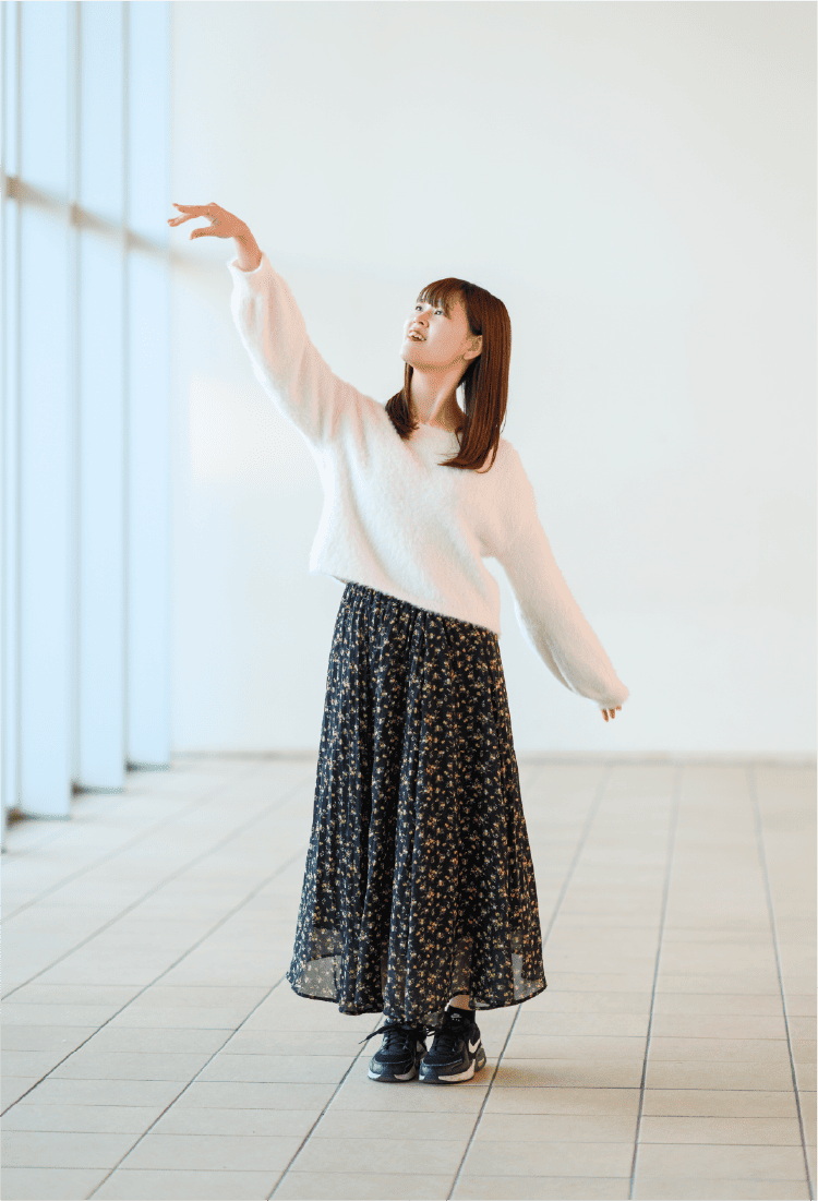 小学校4年生から高校1年生までは、地元・栃木の市民ミュージカルの団体に所属していました。その経験から舞台へのあこがれや好きという思いがあり、いざ就職を考えたときに人生一度きりだしチャレンジしてみようと女優を目指しました。