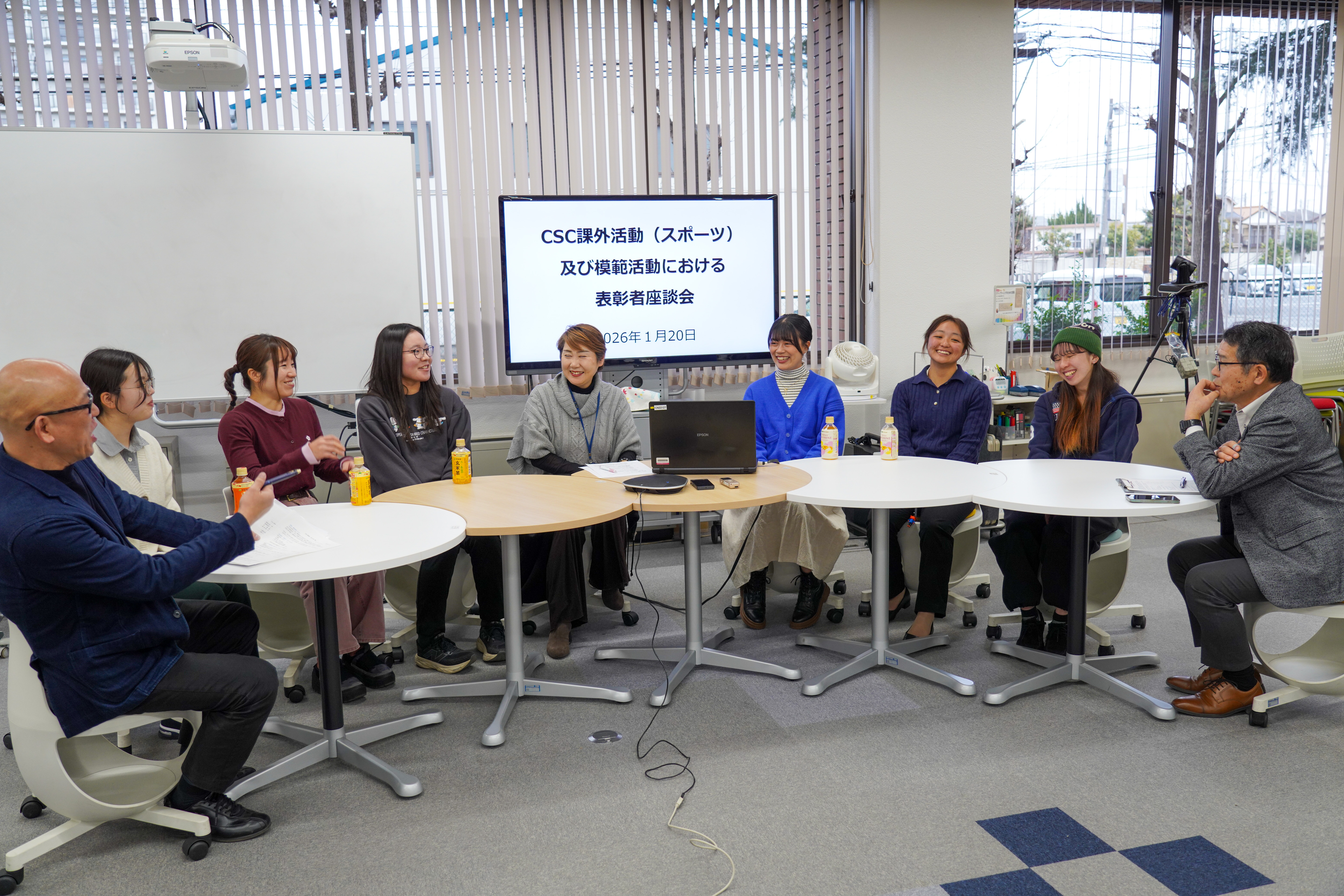 カレッジスポーツセンター(CSC)では、スポーツや課外活動で素晴らしい成績を収めた学生たちを称える「学生表彰」を行っています。今回は新しい試みとして、学年や競技の垣根を越えて集まった6名の表彰学生とカレッジスポーツセンターの教職員による、賑やかな座談会を開催しました。