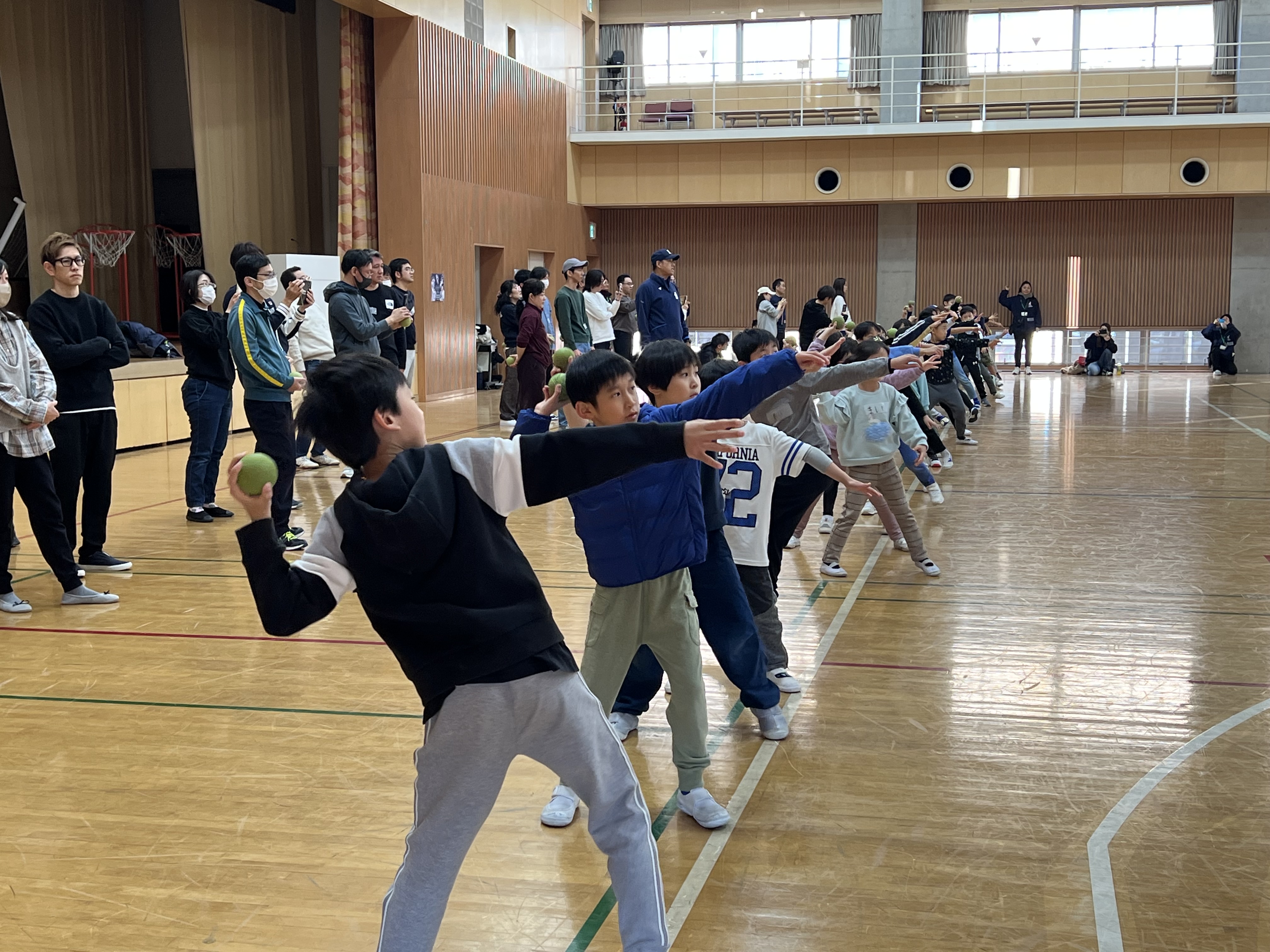 本学幼児教育学科の学生6名を含め、TJUP から参加した6大学の学生・教職員27名は、子どもたちが安全にプレーできるようにサポートし、一緒にゲームに参加したり、子どもたちの活躍に拍手を送ったりしながら、会場の雰囲気を盛り上げました。
