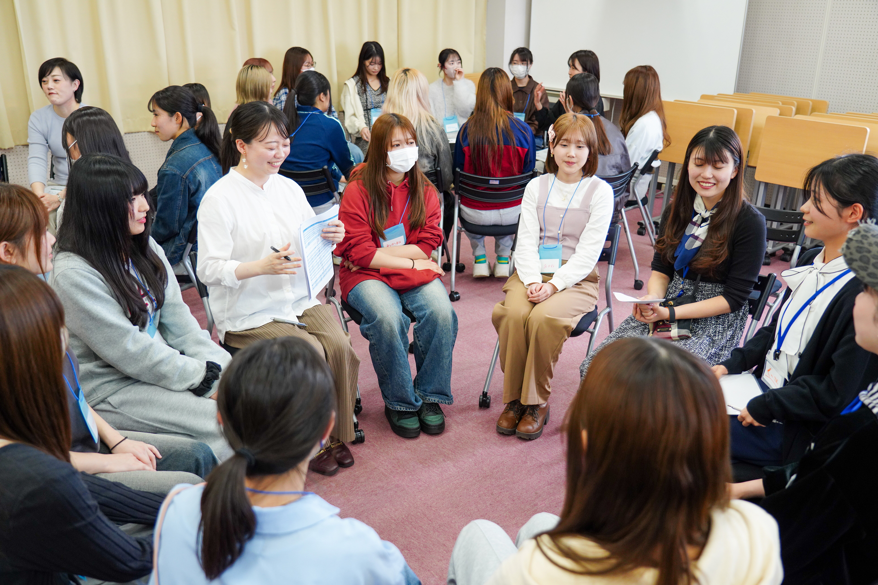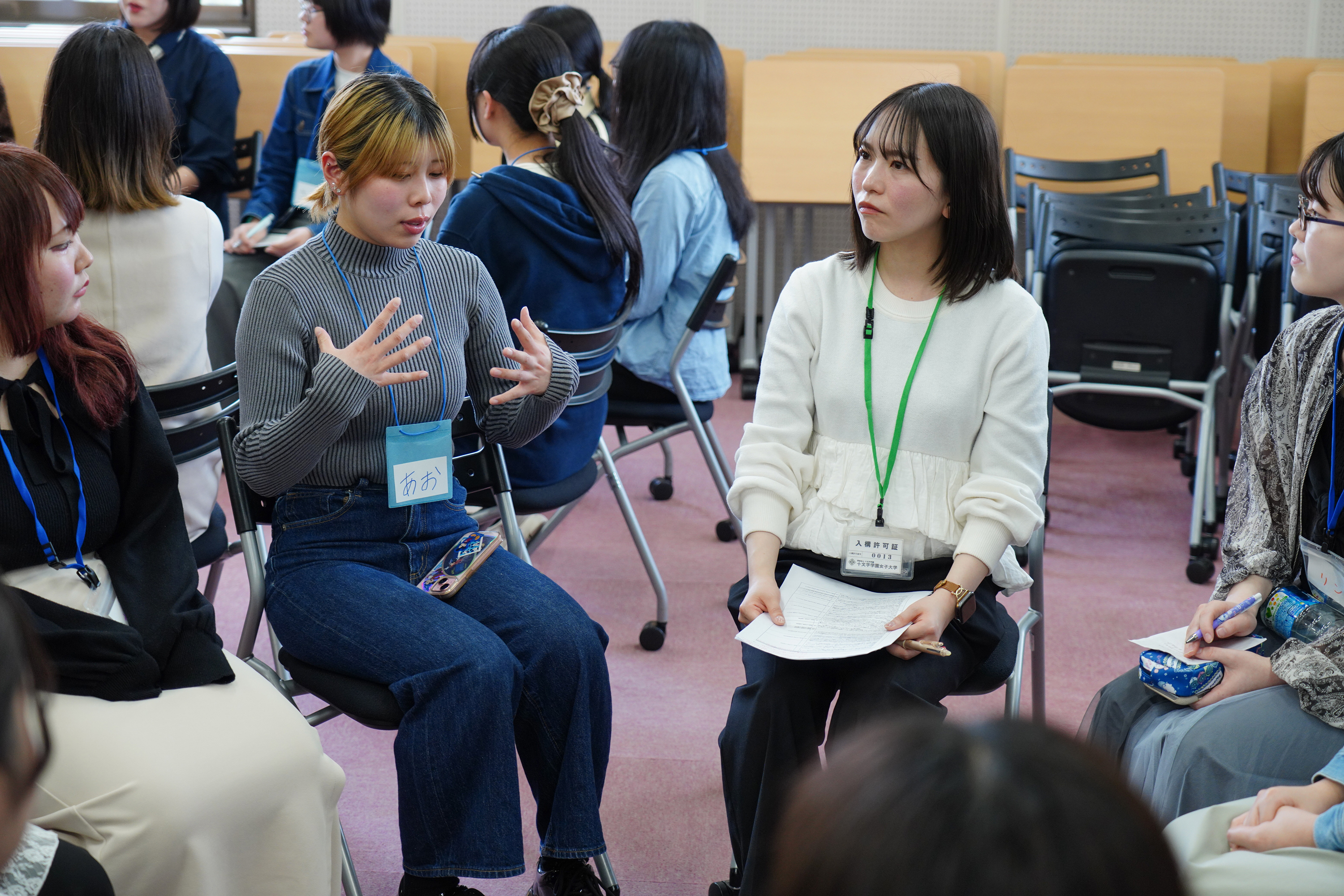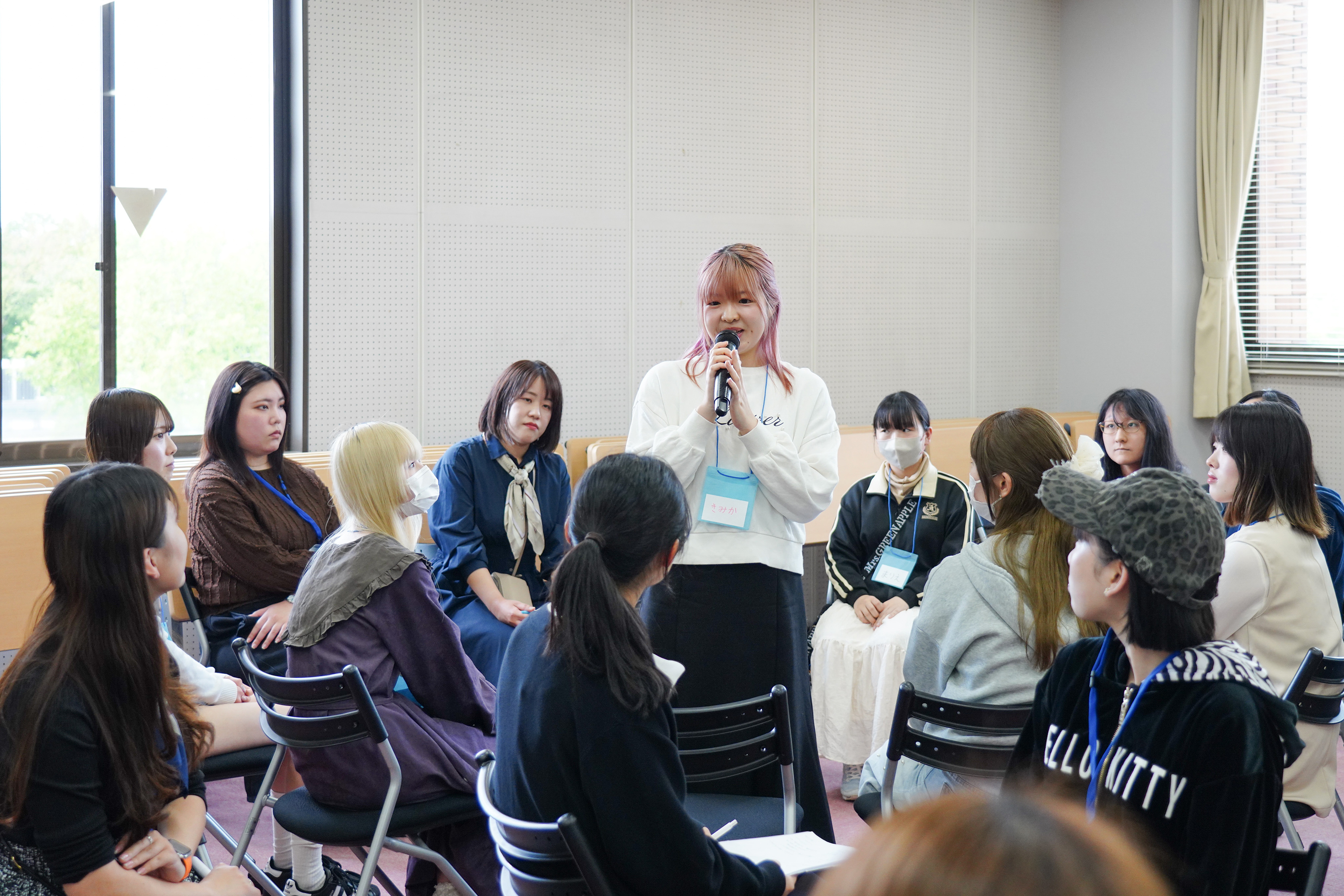自分に合うメイクの探求や始めたきっかけ、さらにはメイクのTPOや就活における自己表現とマインドの切り替え、パーソナルカラーの主体的な解釈、そして他者との関わりやメディアを通じて見いだす「自分らしさ」の確立など、多角的な視点からメイクと自己のあり方について議論しました。単なる化粧の方法論ではなく、「なぜメイクをするのか」「社会の中でどう自分を表現するか」という、アイデンティティに関わる深い対話も行われました。