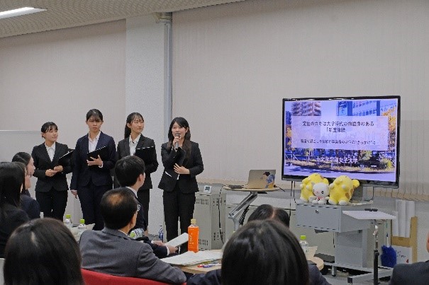新座市の並木傑市長、本学の安達一寿学長の挨拶に続き、今年度のテーマ「新座市の大学に通う学生が、卒業後も新座市に住みたい又は住み続けたいと思うまちづくりについて」のもと、各大学の学生が、それぞれの視点を生かした提言を行いました。