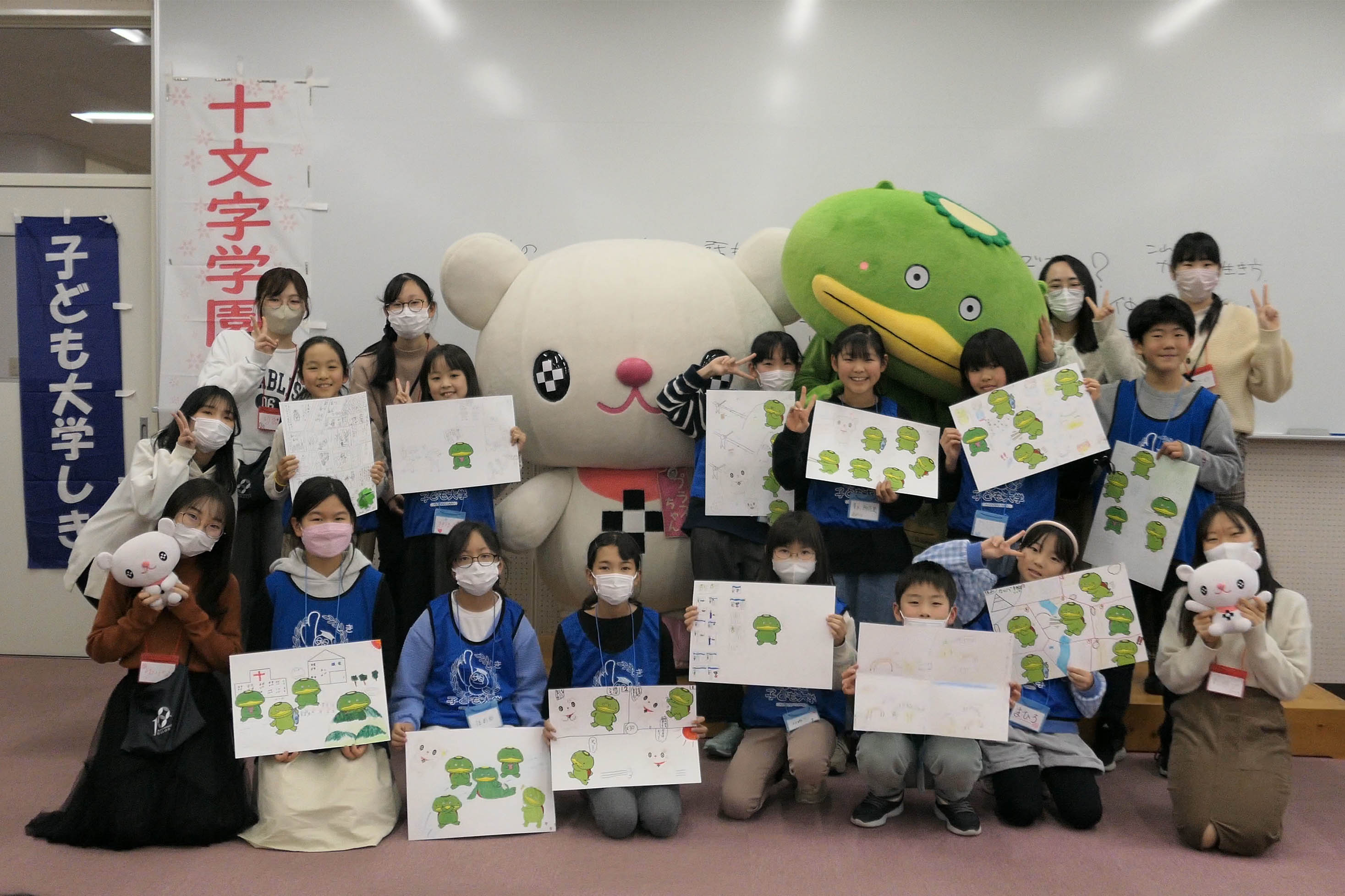 1日目は「ふるさと学」の学びとして、「令和のカパル伝説を作ろう」をテーマに講義を実施。武田比呂男教授を講師に、志木市に数多く伝わるカッパ伝説について学びました。その後、子どもたちは学んだ内容をもとに、志木市広報大使のカパルを主人公にしたオリジナルの「カパル伝説」を作り、画用紙にシールを貼ったり、イラストを描いたりして作品に仕上げました。