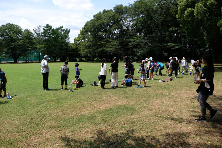 講義のあとは「ペットボトルロケット」を一人ひとり制作し、グラウンドで実際に自分で作ったペットボトルロケットを、学生スタッフのサポートのもと勢いよく飛ばしました。子どもたちは講義を通して、日常生活の中に理科の学習につながる要素がたくさんあるということを体験し学びました。