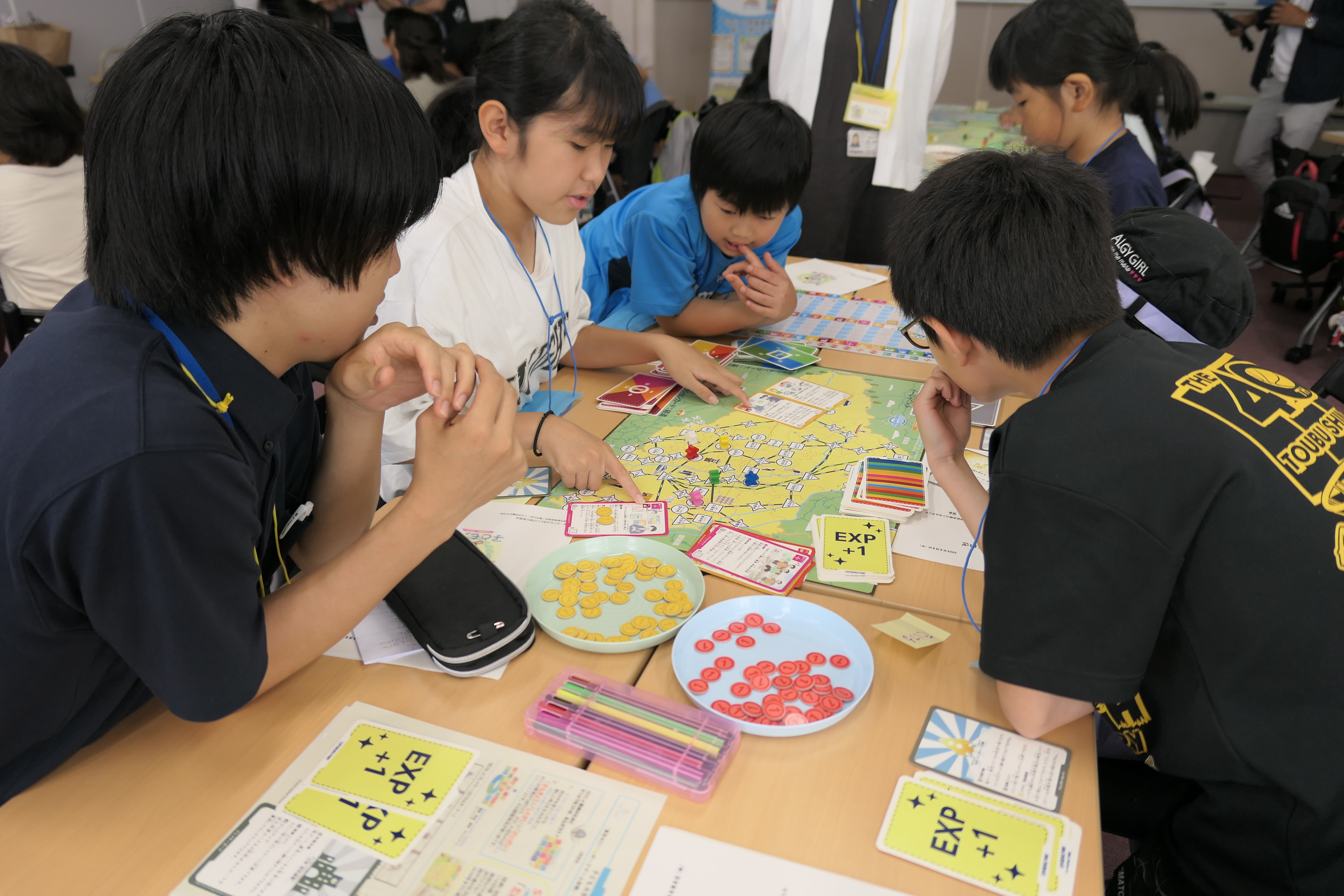 「SDGs」で一番大切な「誰一人取り残さない」ということを掲げ、子どもたちは8つのグループに分かれ、ボードゲーム上で社長や企業のオーナーになって埼玉県内のSDGsの問題を解決していきます。宮内先生からは、SDGsはただ考えるだけでなく、「自分ゴト化」して行動に移すことが大切だということが伝えられました。