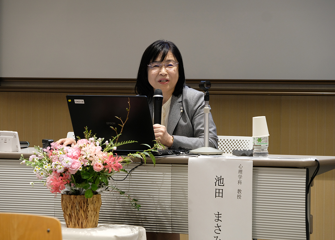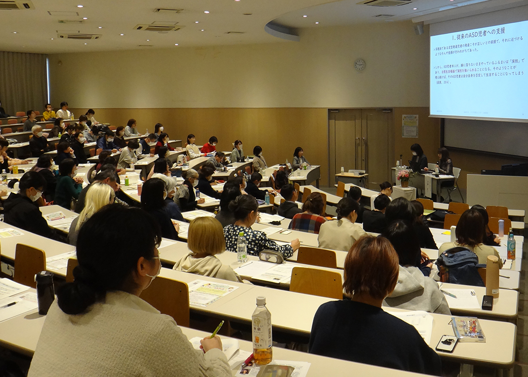 11月29日(土)に、本学9417教室で、心理学科共催の公開講座「自閉スペクトラム症について詳しく知ろう -医学・心理学の研究から分かってきたこと-」を開催しました。高田 栄子氏(埼玉医科大学総合医療センター客員准教授、光の家療育センター)、伊藤 恵子名誉教授(浦和発達臨床心理研究所)、池田 まさみ教授(心理学科)の3名が講師を務め、保育士や幼稚園教諭、児童発達支援関係者など、本テーマに関心を持つ方108名が参加しました。