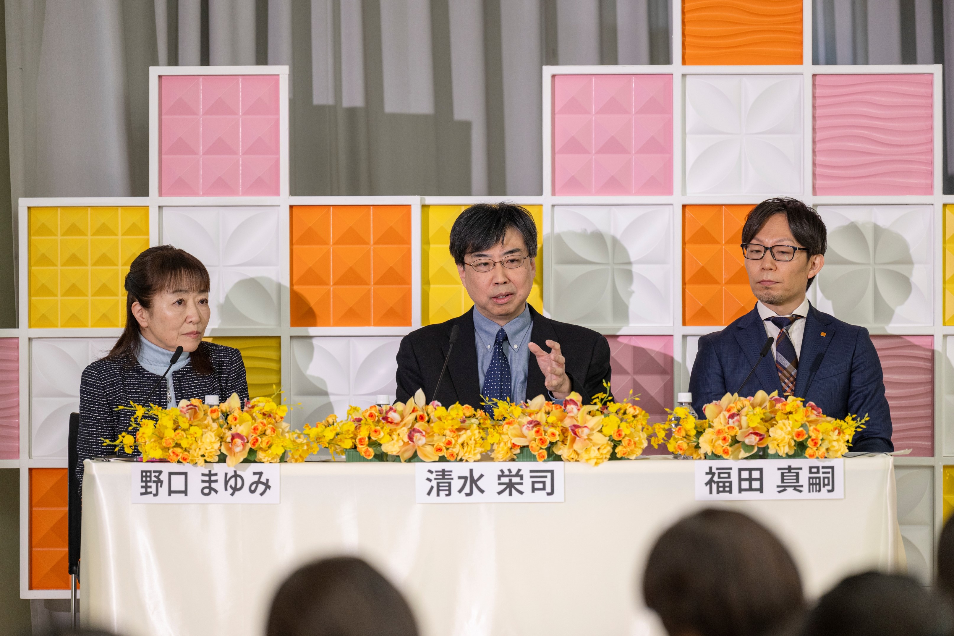 第1部では、普段感じている「ちょっとした不調」や「モヤモヤ」について全学生を対象に事前に行ったアンケートの回答をもとに、シンポジウムを実施。10代から20代の女性が日常生活で抱えがちな心と体の不安や悩みのうち、学生からの回答が多かった①生理に伴う痛みや苛立ちなど「女性特有のモヤモヤ」、②気分が不安定になる「心のモヤモヤ」、③便秘や下痢からくる「おなかのモヤモヤ」の3つのテーマについて、西口クリニック婦人科院長の野口まゆみさん、千葉大学大学院教授で認知行動生理学を専門とする清水栄司さん、慶應義塾大学先端生命科学研究所特任教授で腸内細菌や腸内環境の研究を専門とする福田真嗣さんが、専門的立場から「モヤモヤ解決法」について説明しました。