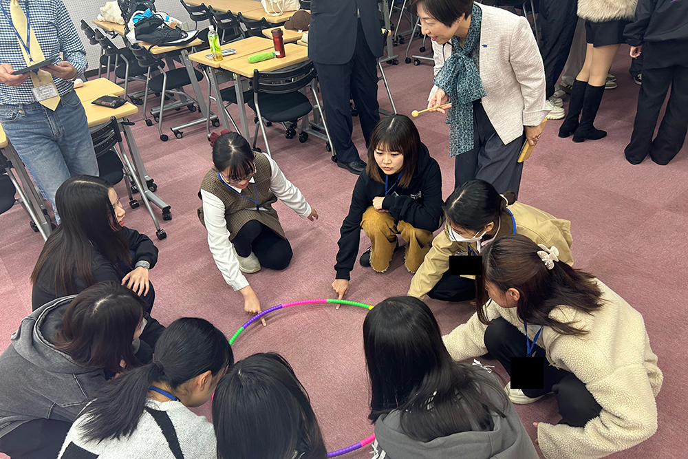 10月20日からの授業では、八潮市に本社を置く株式会社リノメタルの荒金賢治代表取締役社長、取締役 組織開発・人事統括責任者 竹下(荒金)知代美様をお迎えしました。初回は「会話の中で否定語を使わず、まずは“yes”と肯定する」ことをテーマに、前向きなコミュニケーションの大切さを学びました。2回目はフラフープを使ったチームで取り組むワークに取り組み、「できないと思うより、できると思うことが成功の鍵である」と体感的に理解。3回目は「他人と比べず、自分自身を100点とする」グループワークを行いました。学生たちは、自己肯定感や前向きな姿勢の重要性を実感し、ポジティブな思考が行動を変えることを学びました。