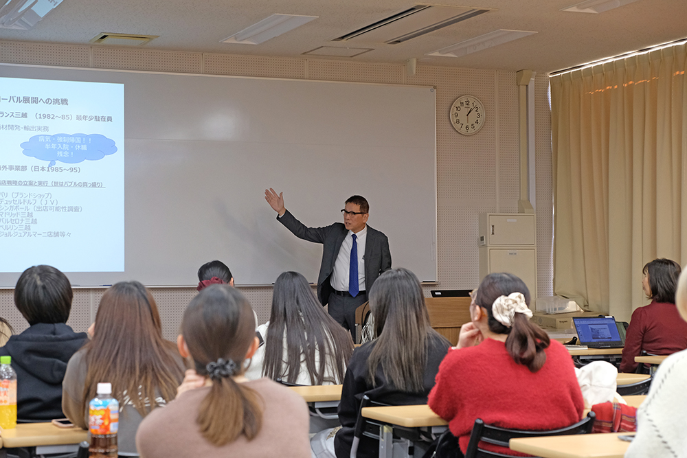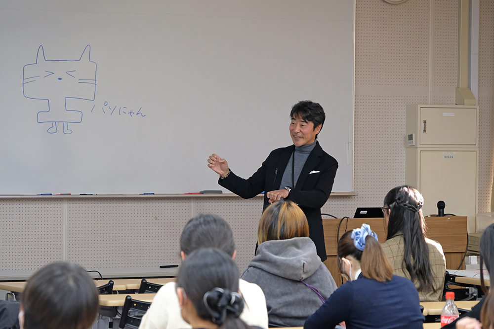 総合科目「経営者と考える未来の会社と働き方」では、企業経営者を招き、学生が能動的に社会や企業のリアルを学ぶ授業を行っています。