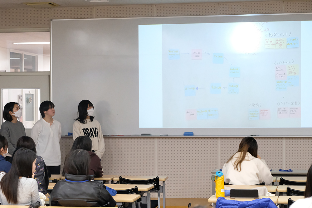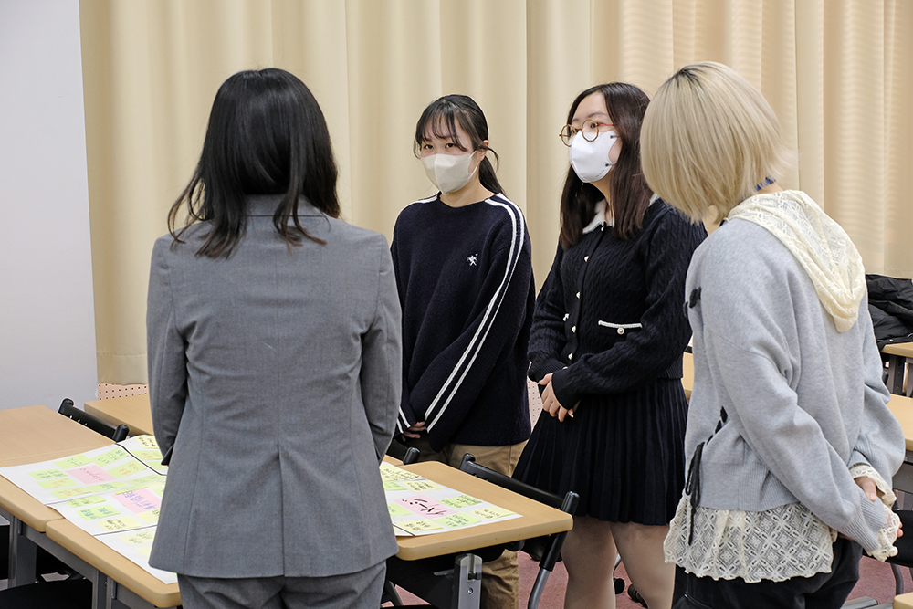 授業の最後には、各グループが作成したマンダラートを発表し、道下社長から直接フィードバックをいただき、「今までになかった気づきがあった」との評価もいただきました。学生は、女性がいきいきと働くための環境づくりを自分自身の将来と結びつけて考えることができ、仕事や働き方への理解が一層深まりました。