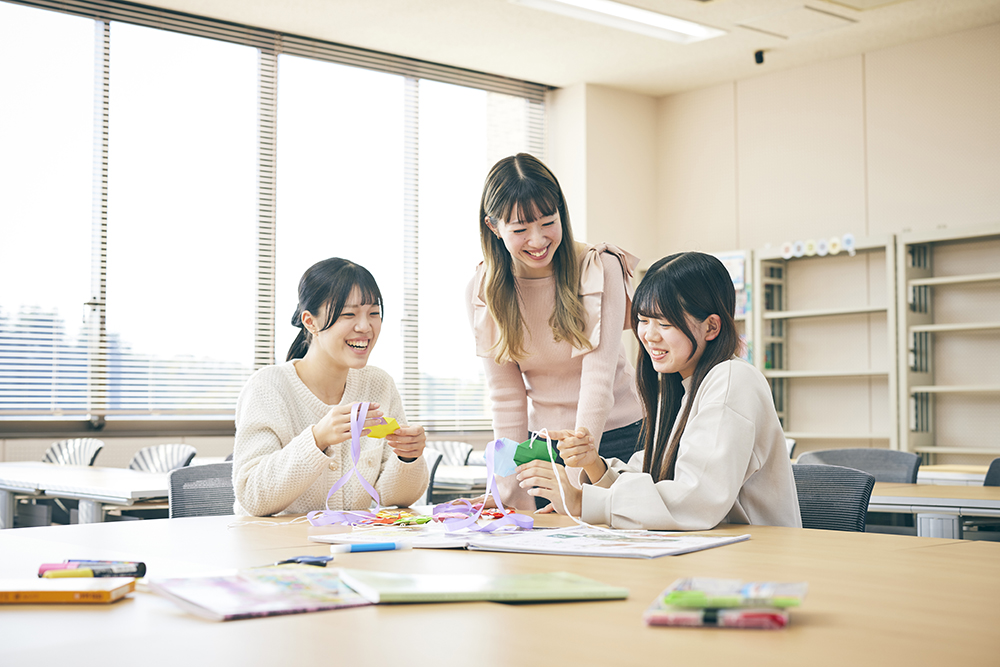 本学では小学校教員免許に加え、学内カリキュラムだけで特別支援学校教員免許も取得可能。約半数の学生が複数免許を取得し、幅広い教育現場で活躍しています。