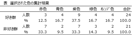 協力してくれた学生たちは、次の表のように色を選びました。