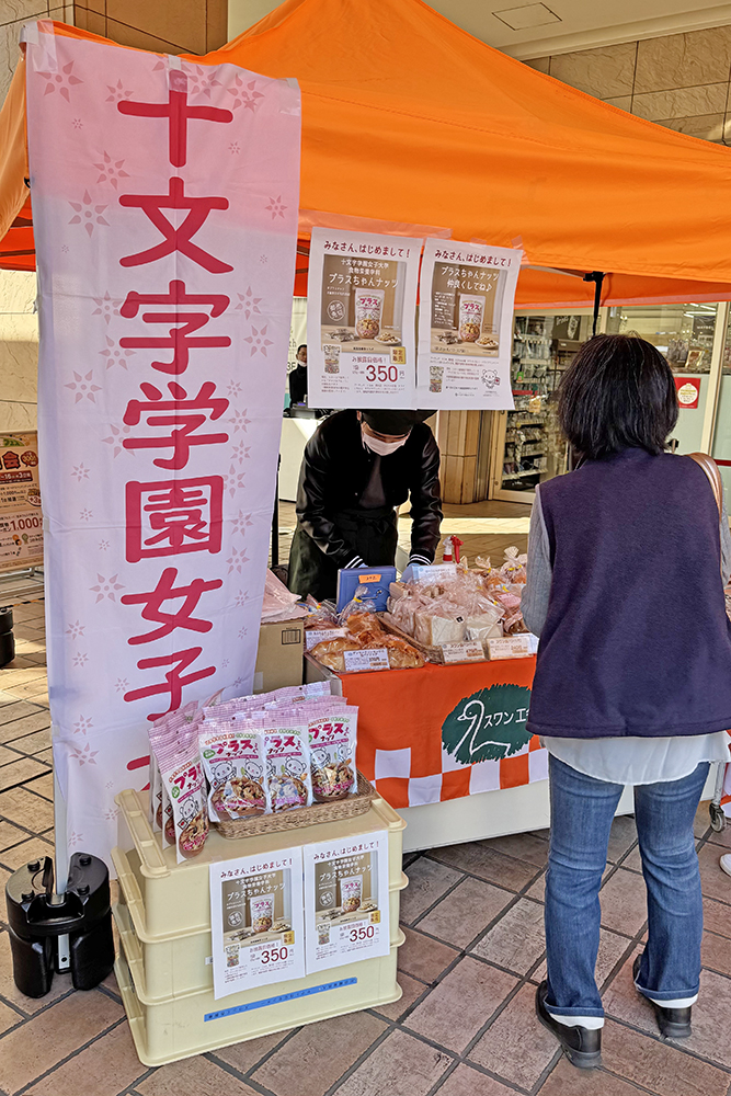 2025年11月14~16日にマルイファミリー志木さんで行われた「I♡新座フェス」で、スワンベーカリーさんと「プラスちゃんナッツ」を紹介しました。