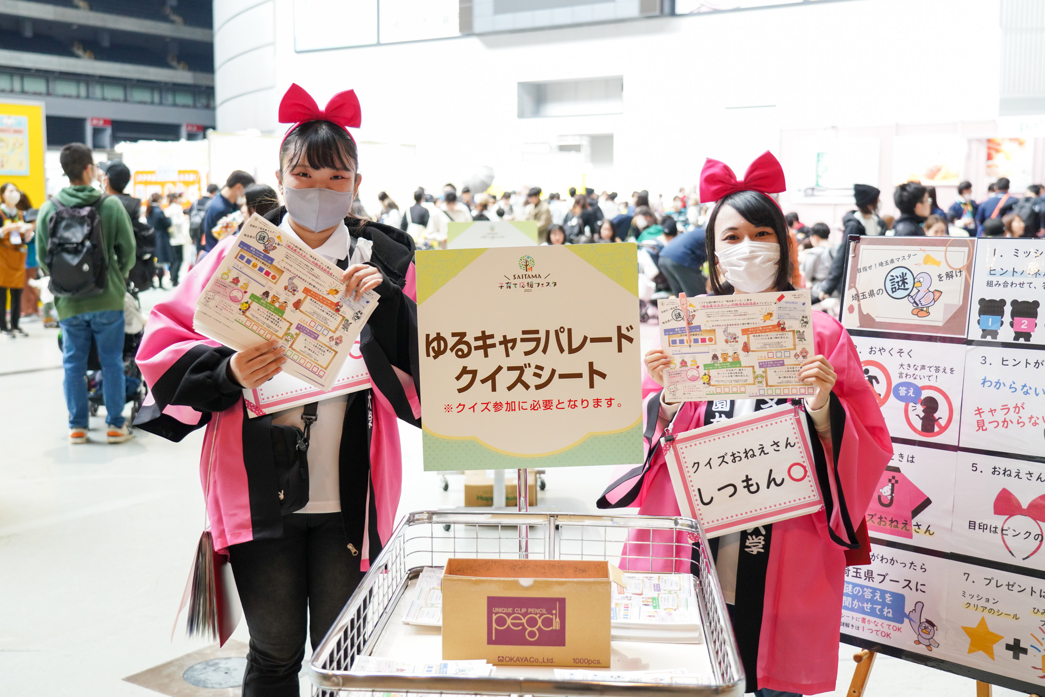 埼玉のゆるキャラ®たちが登場する特別企画「ゆるキャラ®パレード~埼玉県の謎を解け!~」には、本学マスコットキャラクター「プラスちゃん」が参加しました。また、当日開催された「埼玉県の謎を解け!」と題したクイズイベントは、「プラスちゃんくらぶ」の学生たちが中心となって考案したものです。