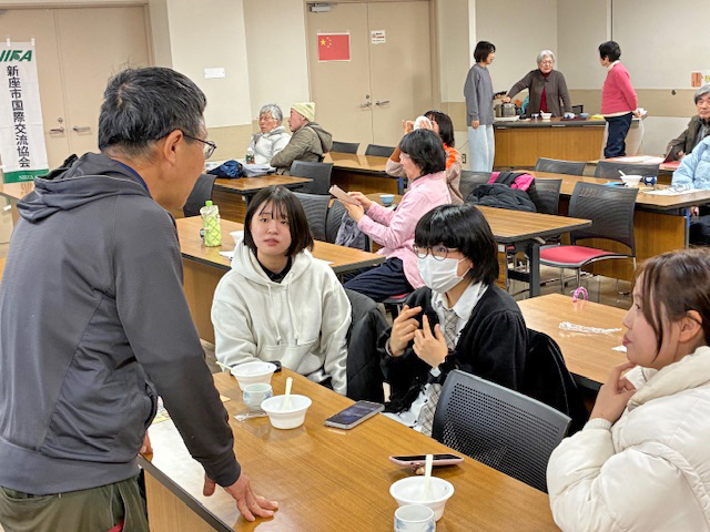 今回の講座の目玉の一つとして、正月用の伝統的なスイーツである「汤圆」の試食が行われました。