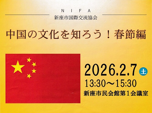 2月7日(土)、新座市民会館にて開催された新座市国際交流協会(NIFA)主催の講座「中国の文化を知ろう! 春節編」において、本学の仇 暁芸(キュウ シャオユン)講師が登壇しました。