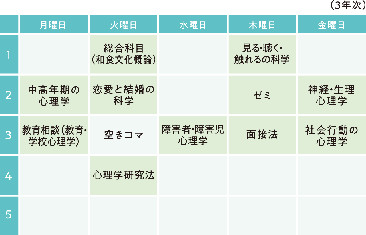 家事をこなして生活する力も身につきます。心理学科 3年 |