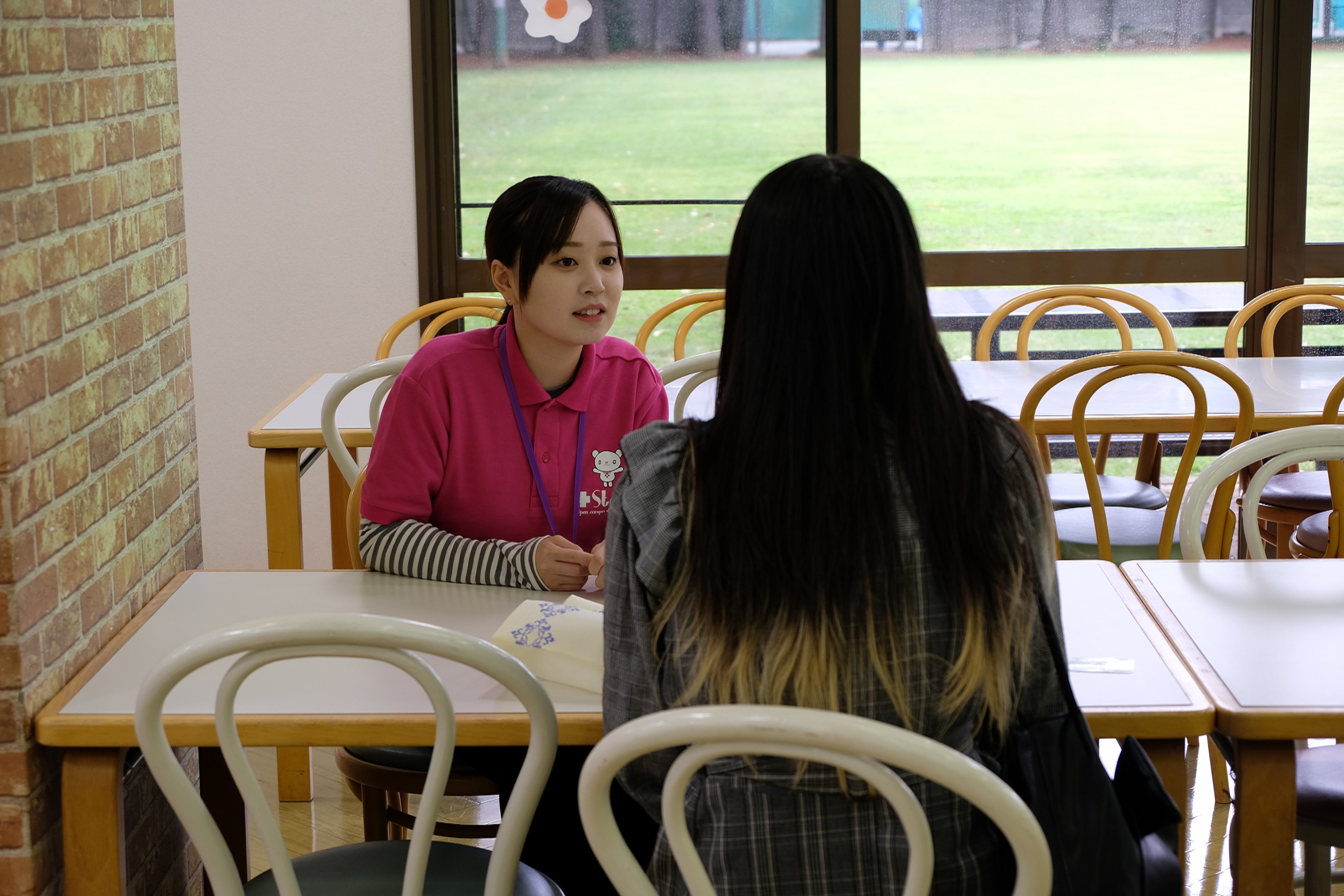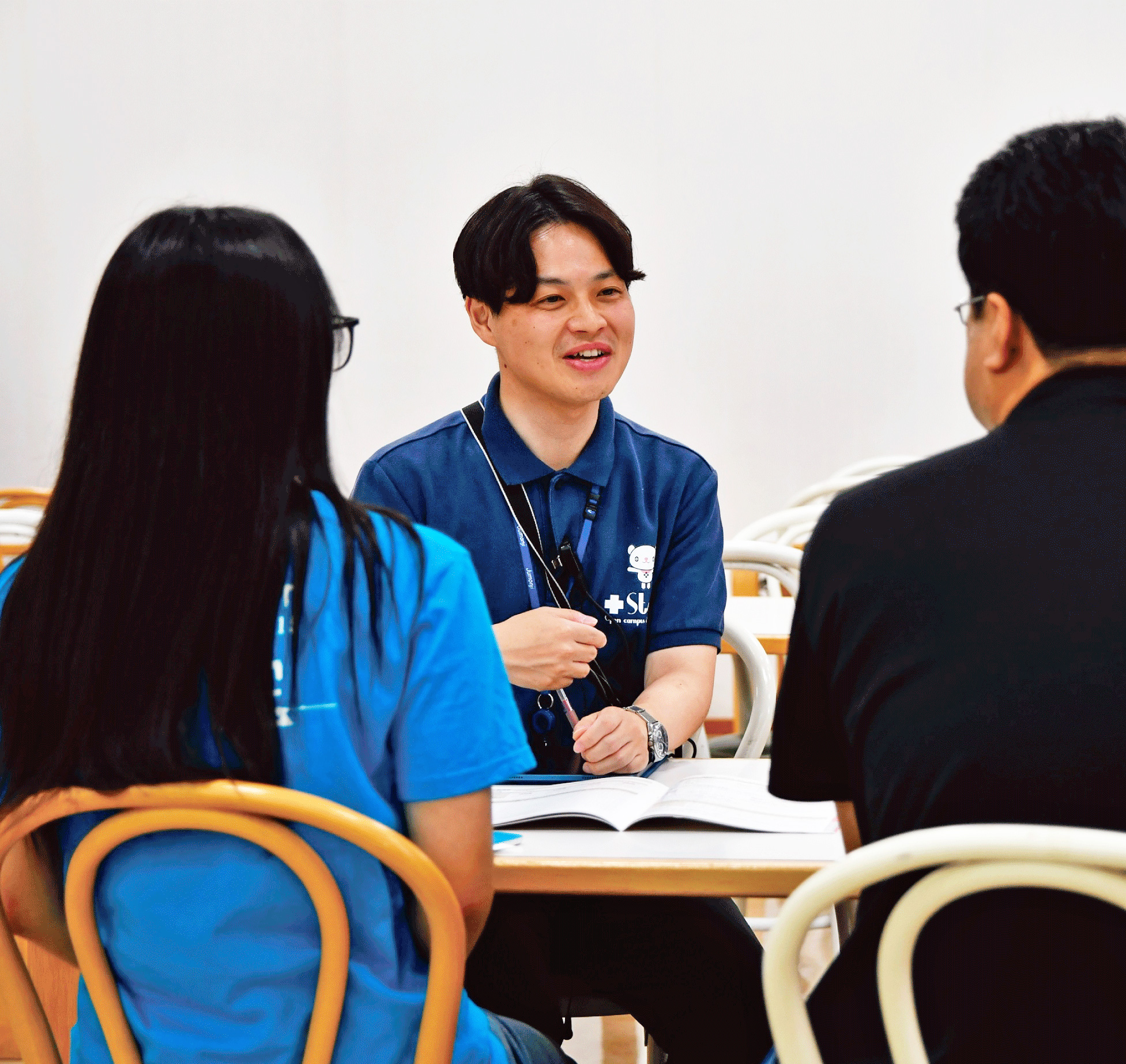 学生スタッフとゆっくり話しができるので、より詳しく学科の学びを知ることができます。気になったことはなんでも質問してみてください!