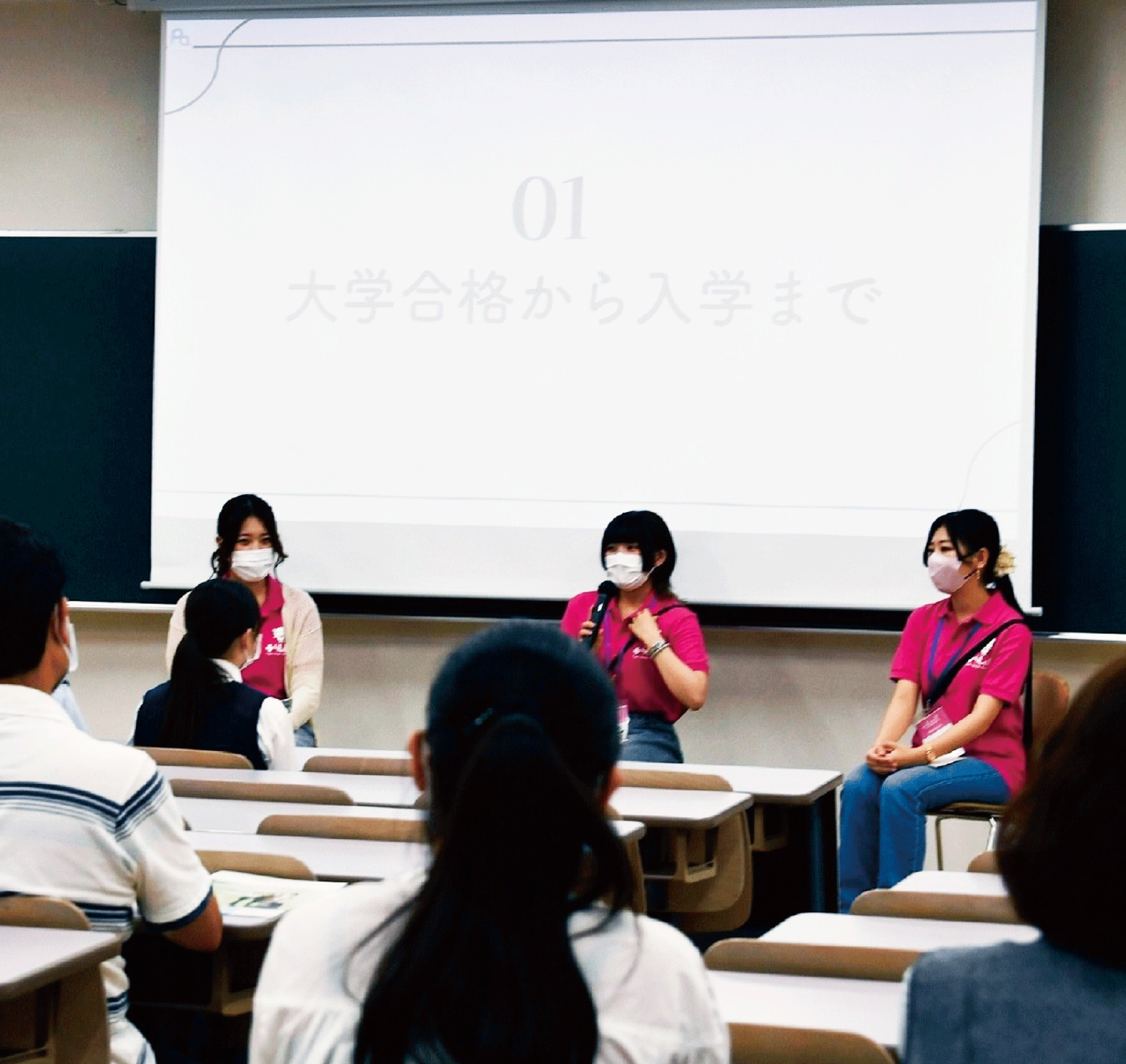 また、学びだけではない未知の大学生活について、十文字の先輩たちが、高校時代との違いやキャンパスの雰囲気、学生生活などについて全部お話ししちゃいます!