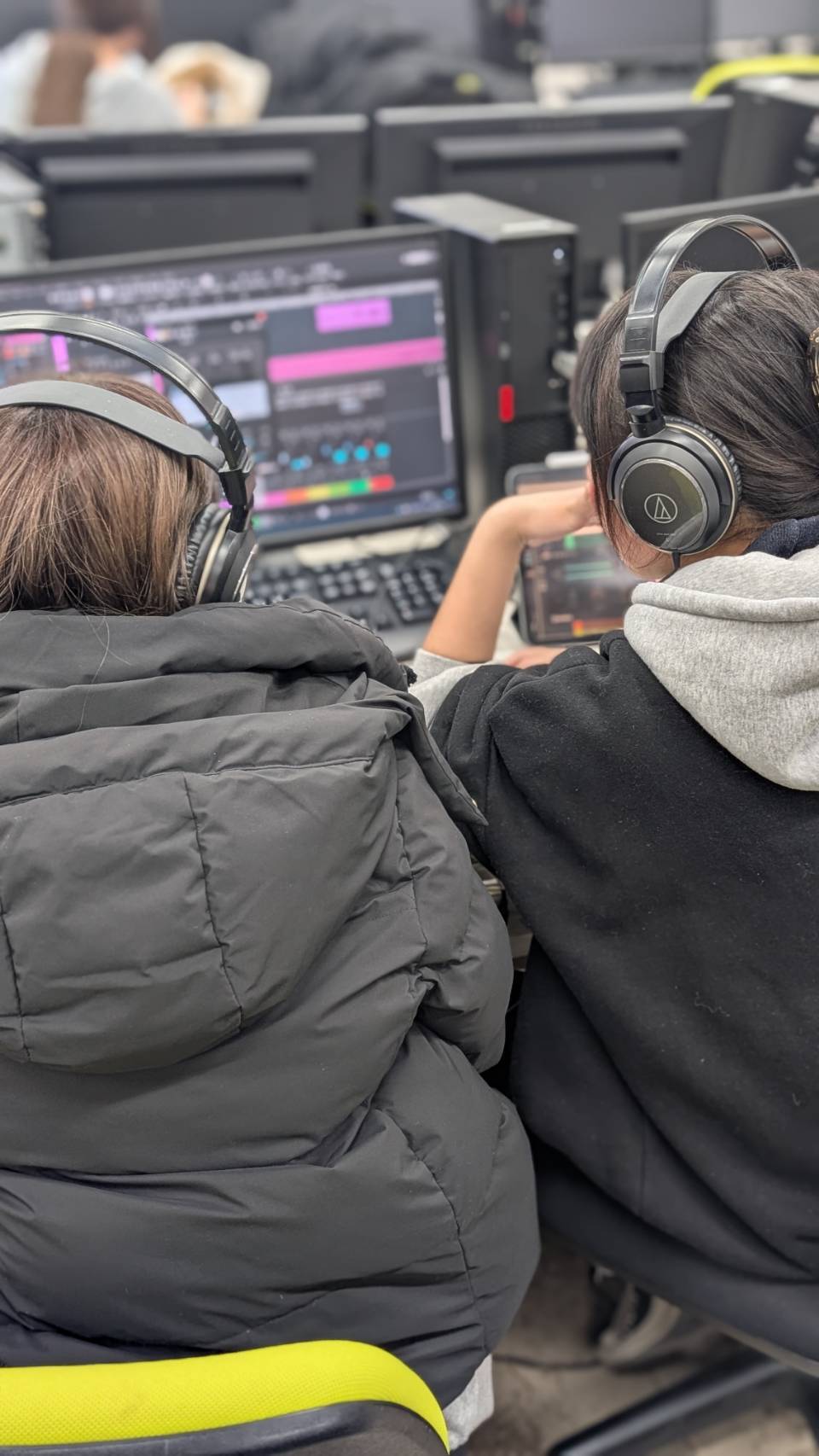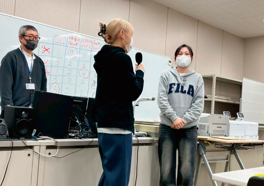 社会情報デザイン学科の授業「音声コンテンツデザイン」では、「音で伝える、音で動かす」をテーマに、学生がチームでオリジナルの音声作品制作に取り組みました。