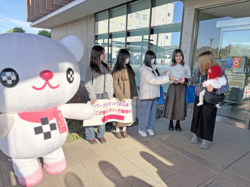 社会情報デザイン学科 川瀬ゼミの学生たちが「パープルリボンパネル展」に参加しました