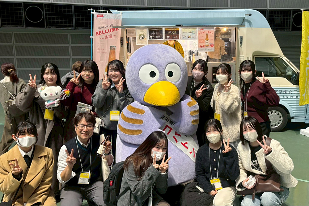 当日は、大野元裕埼玉県知事や県のマスコットキャラクター・コバトンも本学ブースを訪問。学生が商品の特徴や開発背景を説明し、知事からは学生の創意工夫と地域との連携に期待する声をいただきました。来場者との交流を通じ、学生にとって大きな励みとなる機会となりました。