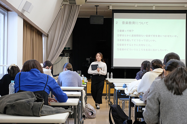 児童教育学科専門科目「初等音楽科教育」にて、特別支援学校で教員として勤務する本学卒業生をゲスト講師として招き、特別授業を実施しました。